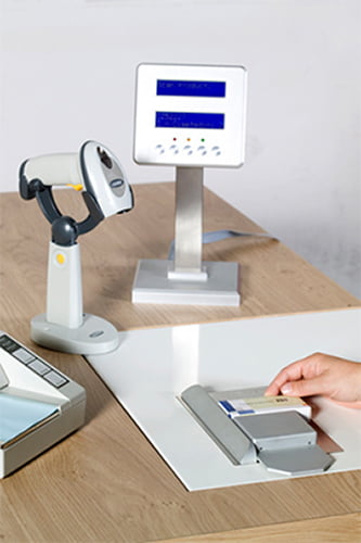 - Each station includes: RoboLabel, Scanner, Display (add an optional “endorsement printer”).