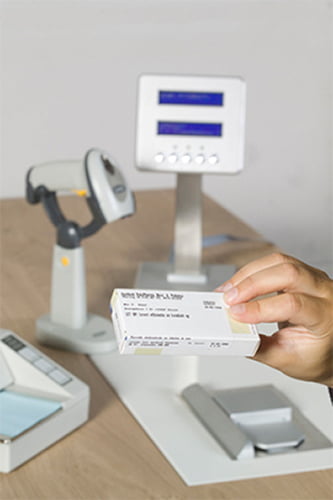 The RoboLabel station operator performs the final barcode check to ensure all correct medications are present and a perfect printed label is then printed and applied directly to each medication package –all in one quick wrist-swipe. Then the operator gathers all medication packages for the patient order into one sealed bag, and applies a final order label. By checking the package barcode against the prescription and simultaneously applying the label, you have absolute confidence in the accuracy of the medication, the order, and the patient.