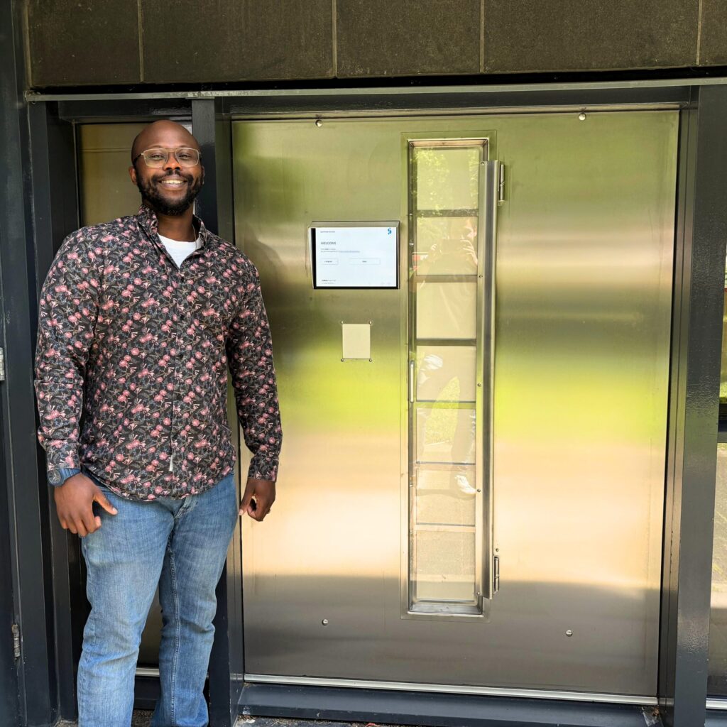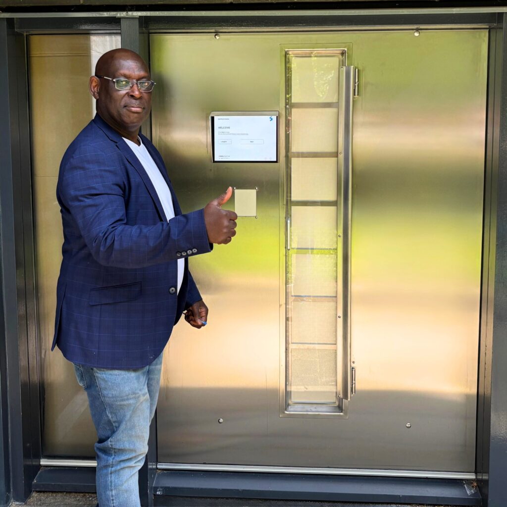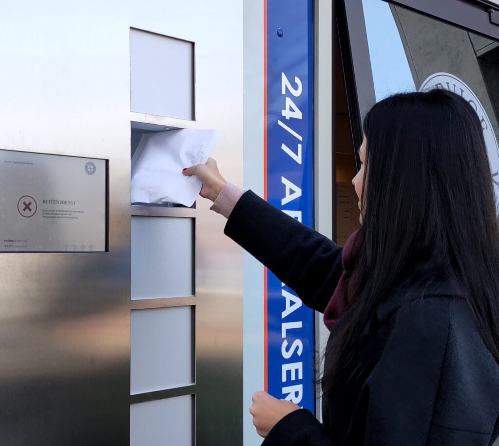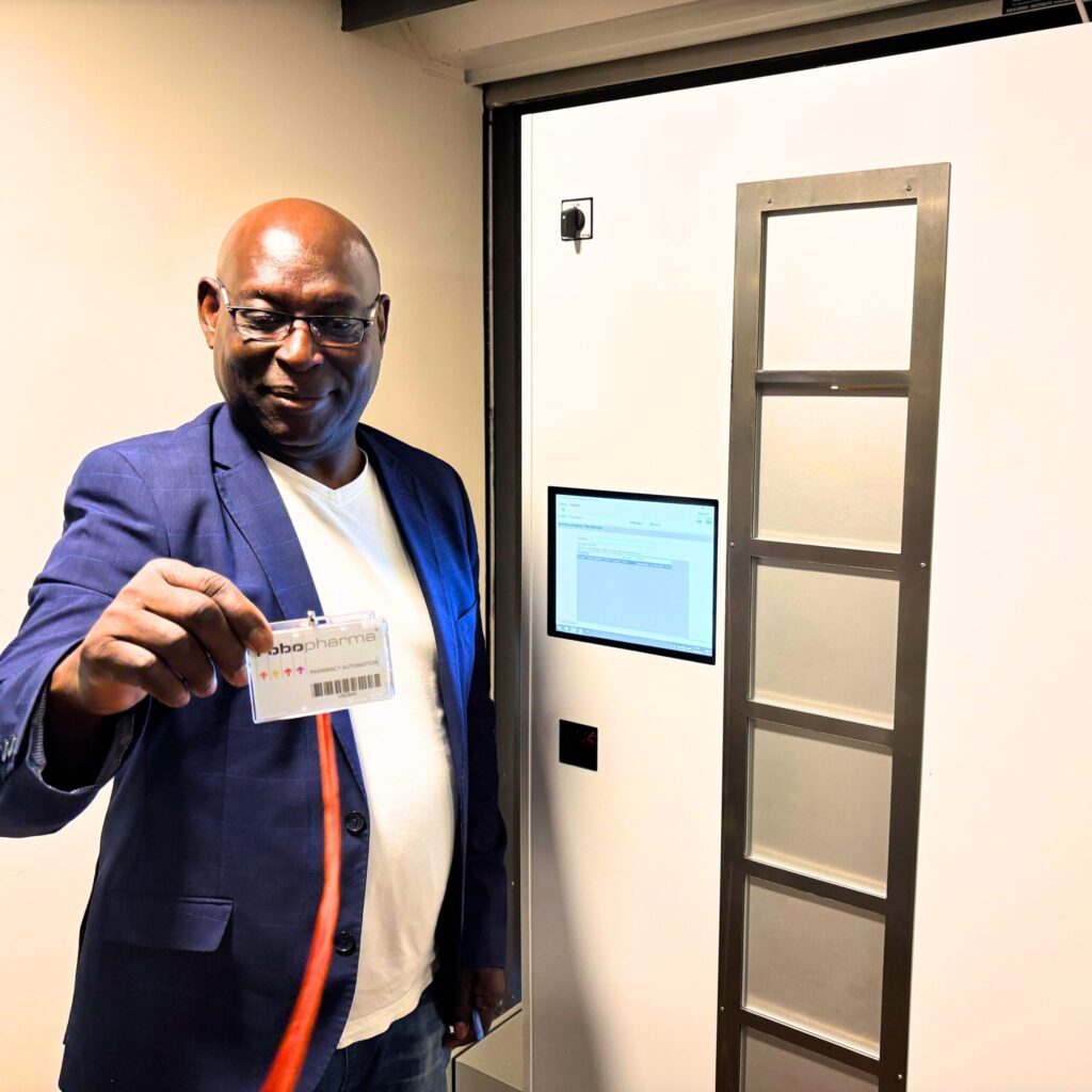 Customer Pickup Outside The Pharmacy: After receiving an SMS message (text) or email from the pharmacy, the customer arrives at the outside of the pharmacy at her/his convenience and enters the unique PIN-code and date of birth. One that bin’s door opens for the customer to retrieve the medication. All transactions are registered. Because RoboWall is typically facing an exterior wall, customers can collect scripts whenever it suits them, 24/7. Interaction is very quick: Typical speed is 4 orders retrieved per minute.