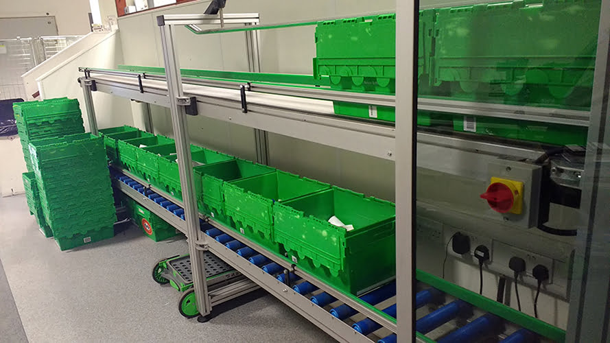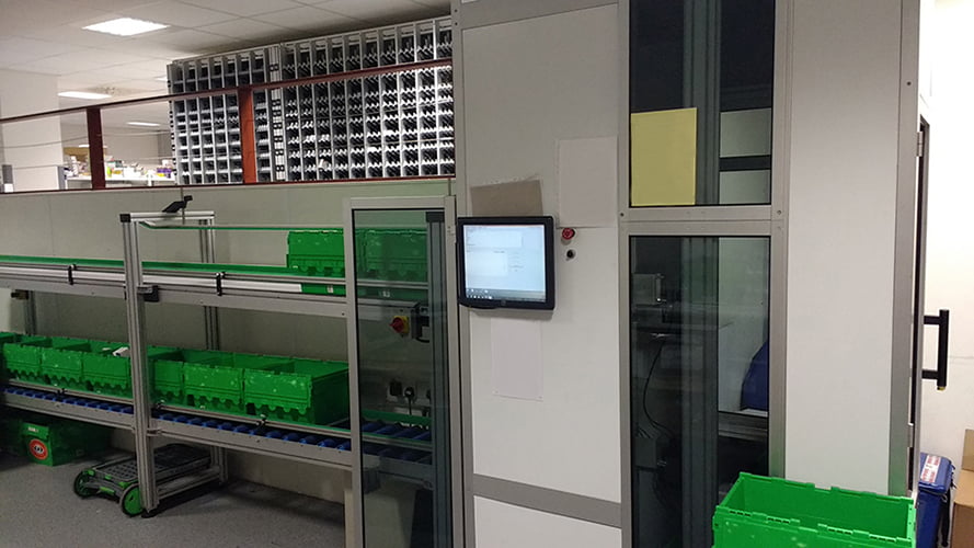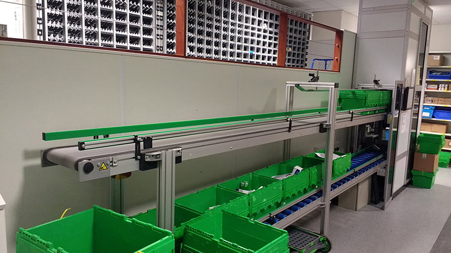 As specific medication packets are selected from the RoboPharma dispensing robot to fulfill each ward’s replenishment order, the medications are placed in a barcoded tote and transported to the conveyor system, which quickly moves the tote to the hospital’s transport system to be delivered to the ward’s sub-pharmacy. The WardBox Filling Station gives pharmacy greater control, data, speed and confidence in the precise picking and delivery of medications.