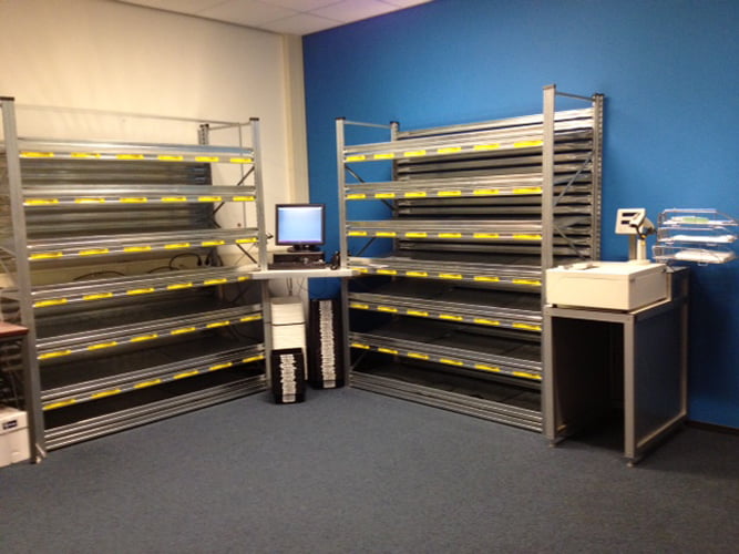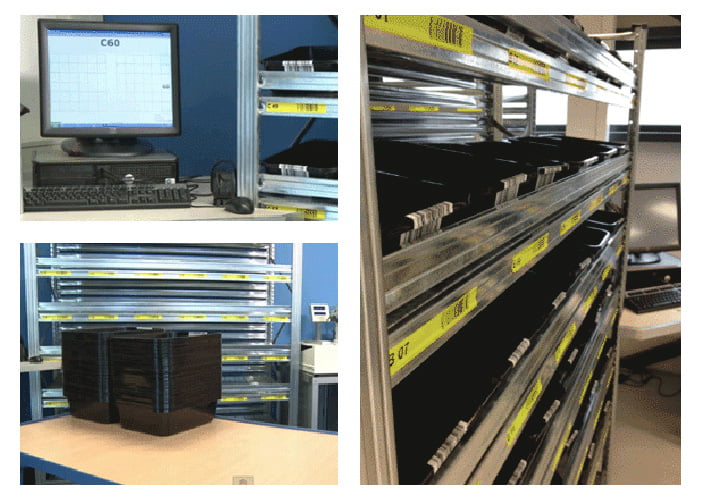 - Once Lean Filling totes are received, the pharmacy technicians use RoboPharma’s barcode-driven racking system and bins, and software to quickly sort each received medication packet to a specific patient order bin.
